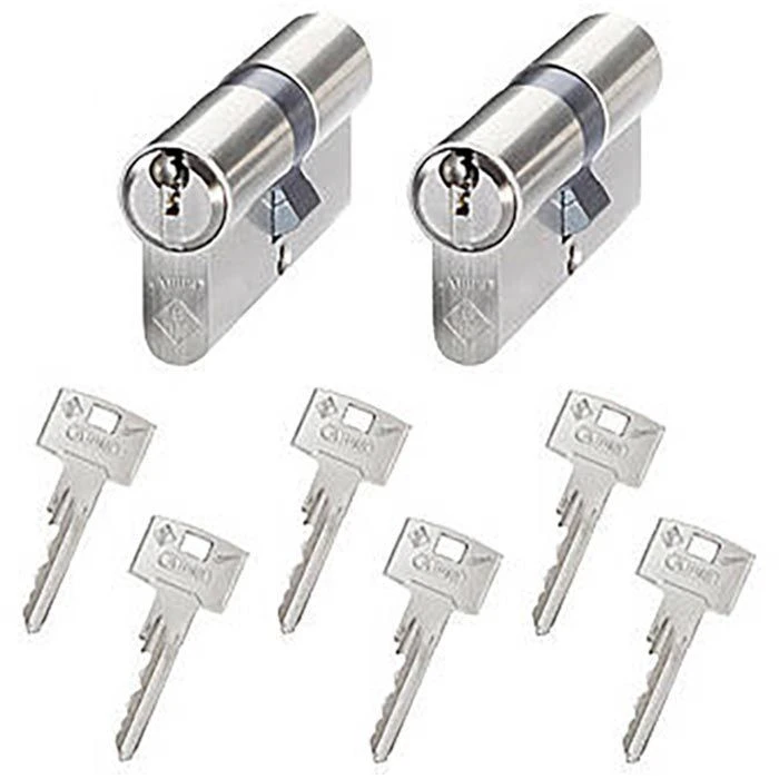 Lieferung: inkl. 2 Zylinder, 6 Schlüssel, Fixierschraube M5, Codekarte für Nachschlüssel