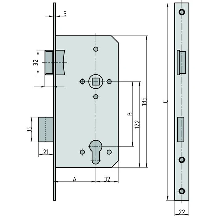• Mit käntigem Stulp und für den Einbau eines Profilzylinders vorbereitet
