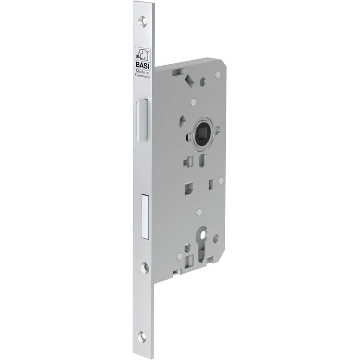 sonstiges: Schlossfalle kann mit Schlüssel geöffnet werden (Wechselschloss), Verriegelung zweitourig, nickel-silber lackiertes Gehäuse, Schlosskasten allseitig geschlossen