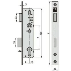 BASI Einsteckschloss ES 979, 9790-6522, Für Haustür, Silber, 22mm, DIN Links