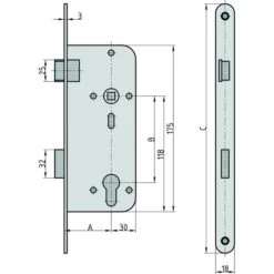 BASI Einsteckschloss ES 920 Ö, Ö9210-0000, Für Zimmertür, Silber, 18mm, DIN Links Und Rechts