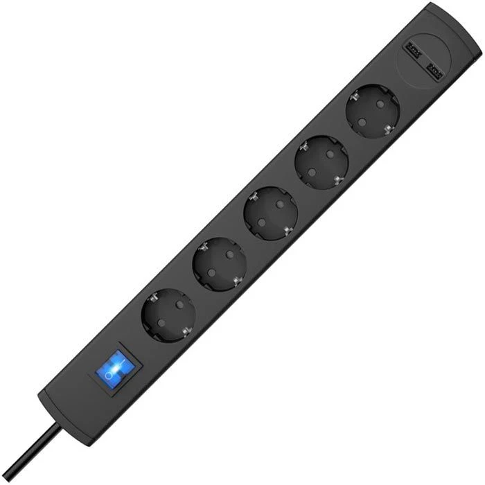 sonstiges: zwei USB-Anschlüsse (5 V, 2,4 A), beleuchteter Ein-/Ausschalter, erweiterter Berührungsschutz, 90 Grad Steckdosenanordnung, anschraubbar