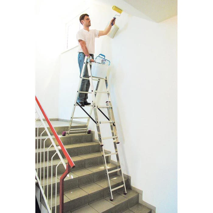 • 3-teilige Alu-Kombileiter, einsetzbar als Anlege-, Schiebe- & Stehleiter