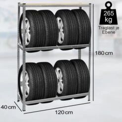 Monzana Reifenregal 104365, 120 X 180 X 40cm, 2 Ebenen & 1 Ablage, 265kg / Ebene, Für 8 Reifen