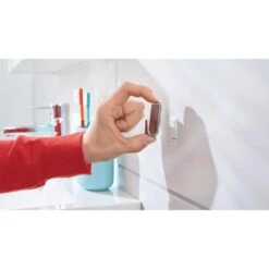 Tesa Klebehaken 57066 Powerstrips Small Eckig, Bis 1kg, Edelstahl, Silber, 2 Stück